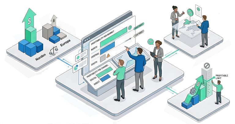 En dashboard som ger enkel överblick över lönsamheten per kanal och marknad